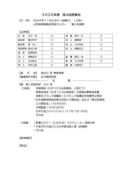 令和7年11月28日(金)13:00より山形県産業創造支援センターにて理事会を開催